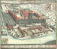 El nuevo monasterio, que se adorna en esa ocasión con la fachada monumental que lo caracteriza, se enriquece en particular con un hall de entrada de 270 m², un hospital, una panadería, una cervecería,[9] pero también un acueducto (1649), dos jardines con sus fuentes, el palacio abacial (el ala norte larga del monasterio, 1681-1699), el claustro nuevo (1695-1715), una nueva iglesia Saint-Jacques (1729). Finalmente, entre 1737 y 1747 se realizó y decoraron el refectorio y la biblioteca.[7]