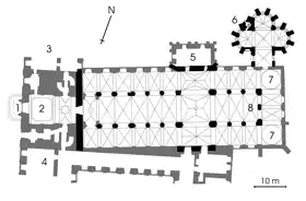 ![]() Vista de la cabecera de la iglesia abacial | ||