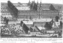 La abadía fue completamente reconstruida después de la guerra, entre 1681 y 1739, durante los abaciatos de Arnold Freiberger, Johann Reich, Dominik Krausenberger, Baltazar Nietzsche, Ludwig Bauch y Konstant Beyer.[7] La iglesia abacial fue decorada (entre 1672 y 1681) en estilo barroco, en el que trabajaron especialmente los pintores Michael Willmann —después de su conversión a la fecatólica, empleado en la abadía desde aproximadamente 1660 hasta su muerte en 1706.[11]— y Felix Anton Scheffler y los escultores Matthias Steinl y Franz Joseph Mangoldt.[5][8]