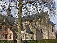 La iglesia abacial data, en su construcción original, de finales del siglo XII. Fue construida siguiendo el estilo de la arquitectura románica, en el subestilo típico de la región de Renania, entendida en su sentido amplio original como la zona cercana al río Rin. En el curso de los siglos, la iglesia ha sufrido diversas modificaciones, de forma que presenta igualmente características del gótico y del barroco.