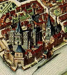 Ha pasado por un periodo de reconstrucciones finalizado en 1538. Su estilo arquitectónico característico se define como un Gótico flamígero con arcos ojivales y el uso del denominado estilo terciario[2] Contando con varios claustros decorados.