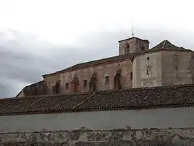 En su lateral se encuentra la Iglesia con su torre, en ladrillo revestido toscamente y con una superposición de fábricas algunas de ellas de una antigüedad presumiblemente mayor que los claustros antes descritos. Su tipología es de una nave con decoración en yeso y restos de pintura dieciochesca hoy en día en pésimo estado y dedicada a labores agrícolas.