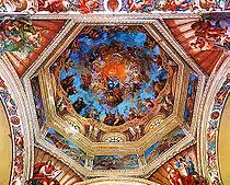Una serie de eventos desafortunados condujeron a una crisis para las construcciones benedictinas que duró unos cien años y que fue agravada por el terremoto de 1768 el cual destruyó la cupola (domo) de la basílica. La cupola fue reconstruida por Pietro Carlo Borboni y decorada por Giuseppe Milani entre 1773 y 1774.