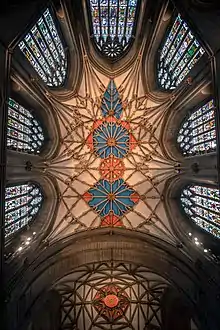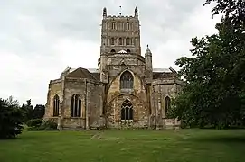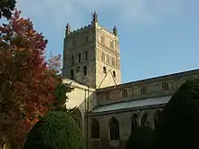 La torre de piedra central estaba rematada originalmente con una aguja de madera, que se derrumbó en 1559 y que nunca fue reconstruida. La restauración emprendida a finales del siglo XIX, bajo la dirección del arquitecto sir George Gilbert Scott, se reabrió el 23 de septiembre de 1879.[8] Los trabajos incluyeron el coro alto, que reemplazó al que se había eliminado cuando la abadía se convirtió en una iglesia parroquial.
