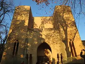 La iglesia que se puede ver actualmente de estilo gótico clásico fue reconstruida en 1257. Su nave de 23 m de alto y 83 de largo se reconvirtió en bodega durante la Revolución y aún almacena las barricas para la producción de vino del viñedo cercano.