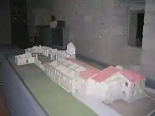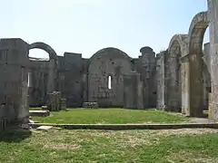 Al sur de la iglesia y orientada en ángulo recto con respecto a ella, se encuentran los restos de una basílica paleocristiana, probablemente construida a fines del siglo V o comienzos del VI, con una pila bautismal hexagonal en un ábside trifolio.[6]