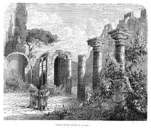 - Grabado del siglo XIX que representa las ruinas de la Inconclusa
