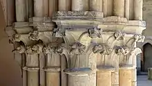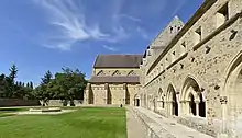 Se desconoce las diferentes etapas de construcción. La forma de los capiteles sugieren las posibles etapas constructivas: capilla del transepto de la iglesia, sacristía, sala capitular, sala de los frailes y refectorio.[5] Las obras pudieron iniciarse por la zona De la Iglesia y se emplearon materiales de la zona: arenisca rosada, toba calcárea, caliza y piedra de Bernay
