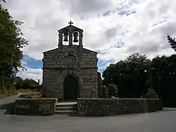 Junto a ella hay, además, un cruceiro hecho de granito en el atrio: consiste en una cruz florecida con las figuras de [Cristo] en el anverso y la Piedad en el reverso; capitel con ángeles a los lados y rollos en las esquinas, eje poligonal con la custodia y atributos de la Pasión de Cristo; con base piramidal troncal en dos escalones cuadrangulares y sin inscripción.