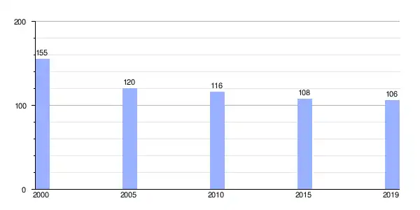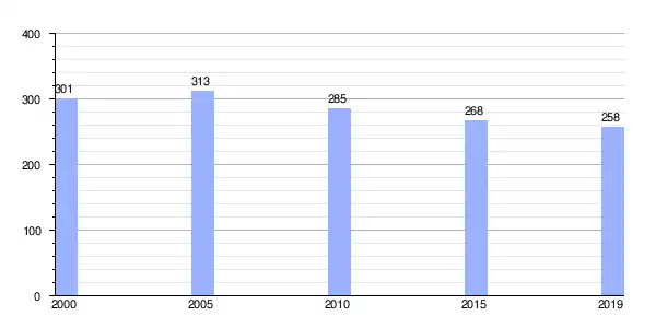 Gráfica de evolución demográfica de Abadín (parroquia) entre 2000 y 2019 |