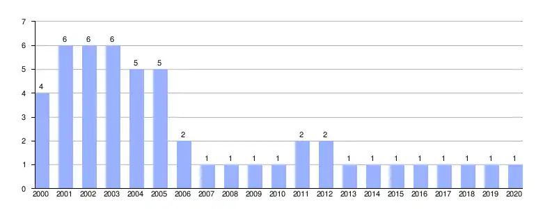 Población de derecho (2000-2020) según los censos de población del INE a 1 de enero de cada año.[6] |