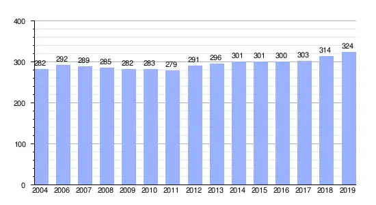 Gráfica de evolución demográfica de Abbéville-la-Rivière entre 2004 y 2019 |