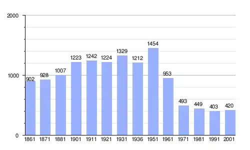 Gráfica de evolución demográfica de Abbateggio entre 1861 y 2001 |