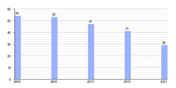 Gráfica de evolución demográfica de Abelairas entre 2000 y 2021 |
