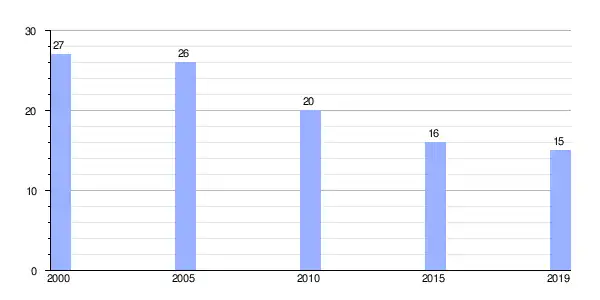 Gráfica de evolución demográfica de A Abelleira entre 2000 y 2019 |
