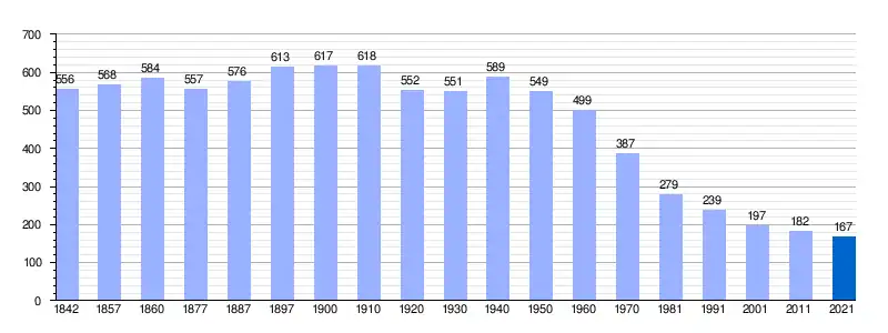 Población de derecho (1842-1991, excepto 1857 y 1860 que es población de hecho) o población residente (2001-2011) según los Censos de Población desde 1842. Población según el padrón municipal de 2021 del INE. |