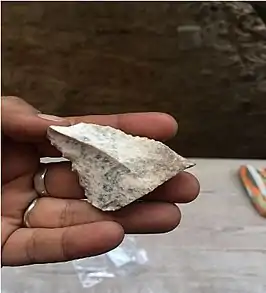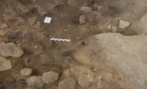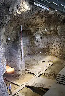 Se han excavado doce niveles que contienen hogares, lítica y restos óseos dispersos, todos del periodo del Paleolítico medio excepto el último, que es del Paleolítico superior temprano. Las dataciones de uranio-torio fechan los depósitos entre 70 000-40 000 años AP, y los niveles arqueológicos tienen entre 49 000 y 46 000 años de antigüedad. Todos estos niveles presentan ocupaciones de neandertales, con asociaciones de la cultura musteriense.