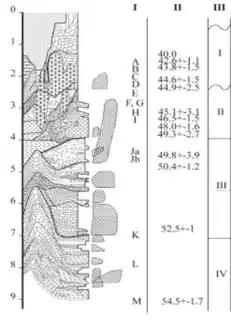 Estas fechas realizadas sobre los travertinos que cubren el nivel E son próximas a la cronología del interestadio 12 de Groenlandia, también conocido como interestadial Hengelo, en la bioestratigrafía polínica de la Grand Pile (Vallverdú Poch et al., 2014[4]).