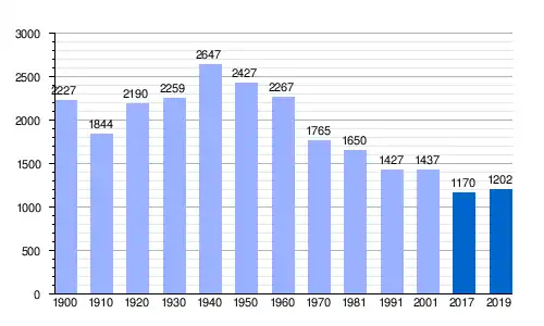 Gráfica de evolución demográfica de Abrucena entre 1900 y 2019 |