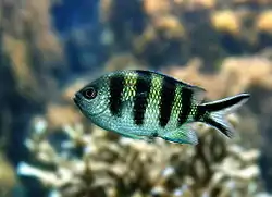 Abudefduf sexfasciatus es una especie de peces de la familia Pomacentridae en el orden de los Perciformes.
