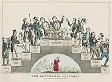 El progreso del borracho, 1846 * Paso 1. Un vaso con un amigo. * Paso 2. Un vaso para evitar el frío. * Paso 3. Un vaso en exceso. * Paso 4. Borracho y desenfrenado. * Paso 5. Alcanzada la cumbre. Compañeros alegres. Un borracho confirmado. * Paso 6. Pobreza y enfermedad. * Paso 7. Rechazado por los amigos. * Paso 8. Desesperación y crimen. * Paso 9. Muerte por suicidio. | ||