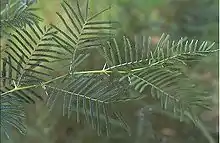 Es un árbol de gran tamaño, alcanzando hasta los 25 m de altura, con la corona plana o en forma de paraguas. Estípulas espinescentes, blanco, recto, fuerte, de hasta 12,5 cm de largo. Pinnas 6-35 pares, foliolos en 15-52 pares. Flores blancas o de color amarillo pálido y fragante. Vaina 8-21 cm de largo, de 1.5-3.5 cm de ancho, rectas o ligeramente curvas, indehiscente.