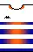 - Titular: Camiseta:Azul oscura con rayas naranja pantalón:azul oscura y medias:naranja oscura.