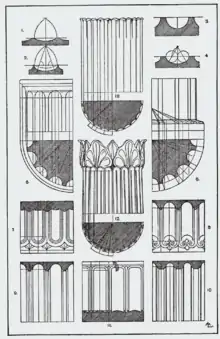 En la columna dórica, están separadas por aristas vivas; en la jónica y la corintia, por nervaduras. El orden toscano no tiene acanaladuras y son opcionales para los otros órdenes.