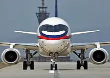 ![]() 97004, la aeronave involucrada en el accidente, en la exhibición aérea de MAKS en agosto de 2011. | ||
