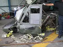Restos del helicóptero en un peritaje.