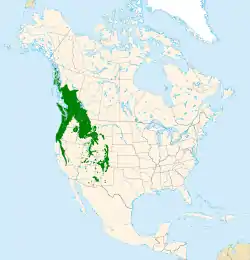 Es un arce nativo del oeste de Norteamérica, desde el sudeste de Alaska, Colombia Británica, oeste de Alberta, este a oeste de Nebraska, sur de Washington, Montana, Colorado a California, Arizona y Nuevo México.