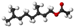 Acetato de geranilo es un éster que se puede preparar semi-sintéticamente por la simple condensación del terpeno natural más común geraniol con ácido acético.
