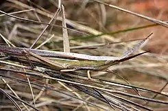 - En inglés es conocido como long-headed toothpick grasshopper.