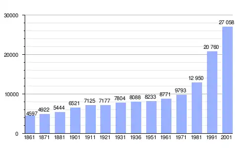 Gráfica de evolución demográfica de Aci Catena entre 1861 y 2001 |