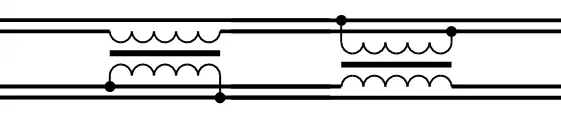 Para un acoplamiento 3 dB, con una división igual de la señal, otro punto de vista puede ser más apropiado: Dos de los pares de líneas son combinados en una línea polifásica. Se puede utilizar un transformador polifásico para redistribuir la señal en un grupo de líneas rotadas 45º