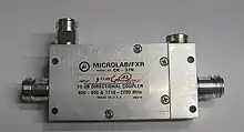 Divisores de potencia y acopladores direccionales son dispositivos pasivos usados en el campo de la radio tecnología. Estos dispositivos acoplan parte de la potencia transmitida a través de una línea de transmisión hacia otro puerto, a menudo usando dos líneas de transmisión dispuestas lo suficientemente cerca para que la energía que circula por una de las líneas se acople a la otra.