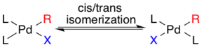 Aunque las adiciones son cis, el complejo de Pd(II) se isomeriza rápidamente al complejo trans.[10]