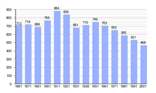 Gráfica de evolución demográfica de Acquaviva d'Isernia entre 1861 y 2001 |