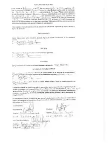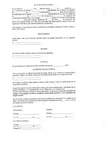 El acta de conciliación es un documento donde se expresa la voluntad de las partes incluyendo la declaración final de un proceso de conciliación. Esta acta cuenta con valor jurídico, por lo que de no ser cumplida por las partes involucradas, se ejecutarán de inmediato los puntos mencionados en el acta, solicitando su cumplimiento. Una característica significativa de esta acta es que puede ejecutarse en un menor tiempo a diferencia de otros juicios jurídicos o pleitos judiciales.