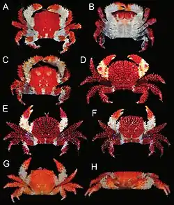 Se caracteriza por su coloración es roja y blanca, distinguiéndose de A. spinosissima por la disposición de la espinas de su caparazón, quelípedos y pereiópodos además de la estructura de los gonópodos masculinos.[lower-alpha 1] Además es similar en apariencia a A. polyacantha sin embargo difieren en el caparazón.[2]