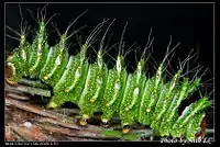 La hembra pone hasta 120 huevos, y puede colocar sus huevos en cualquier lugar. El huevo tiene forma ovalada, 1.5 mm; Gris blanquecino, y firmemente pegado a las ramas o lados de la jaula donde se había mantenido a la hembra. Orugas, 4–5 mm de largo, eclosionan después de 10–14 días, cuanto más caliente y mayor humedad, más rápido sucederá.