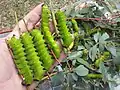 - Pupa hembra mostrando el desarrollo de las alas en los días previos a la emergencia