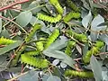 Las plantas alimenticias utilizadas en cautiverio incluyen Eucalyptus gunnii, Liquidambar, Rhus (sumac), Prunus lusitanica (laurel de Portugal), Arbutus unedo (madroño) y Betula (abedul). Crataegus (espino), se pueden usar varios tipos de rosa, Salix (sauce) y Quercus ilex (encina), pero con malos resultados.