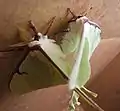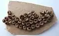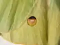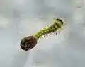 - Pupa, sacada del capullo. Ojos visibles en la cabecera (izquierda)