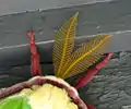 - La larva del quinto estadio comienza a crear un capullo (observe las hebras de seda en las hojas)