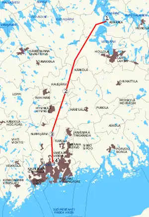 El agua es bombeada al sur del gran lago Päijänne, en Asikkalanselkä, en un sector donde el agua es una de las más puras del país y sobre todo potable incluso antes de su tratamiento. Es conducida por el túnel que va descendiendo hacia el mar, de 30 a 100 metros bajo la superficie, hasta la reserva de Silvola en Vantaa. El agua es enseguida bombeada por las fábricas de tratamiento y distribuida a más de un millón de habitantes de las localidades de Helsinki, Vantaa, Espoo, Kauniainen, Hyvinkää, Järvenpää, Kerava, Kirkkonummi, Sipoo y Tuusula, a veces incluso a Porvoo.