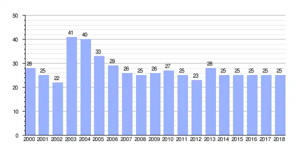Gráfica de evolución demográfica de Adoufe entre 2000 y 2018 |