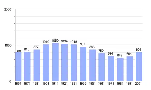 Gráfica de evolución demográfica de Adrara San Rocco entre 1861 y 2001 |