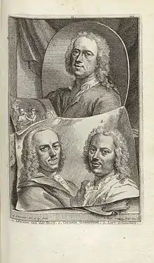 Cuadro de Adriaan van der Burg(arriba) y sus dos pupilos Aert Schouoman (izquierda) y Cornelis Greenwood (derecha).