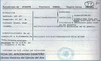 El Aeródromo de Sisante dependía de la Base Base Aérea de Albacete dando descongestión a esta y distribuyendo por diferentes lugares de la zona los aviones, además se establece con la categoría de aeródromo permanente, por lo que esta dispuestos a albergar fuerzas de combate y tener una guarnición fija de un teniente, dos sargentos, seis cabos y cincuenta soldados.